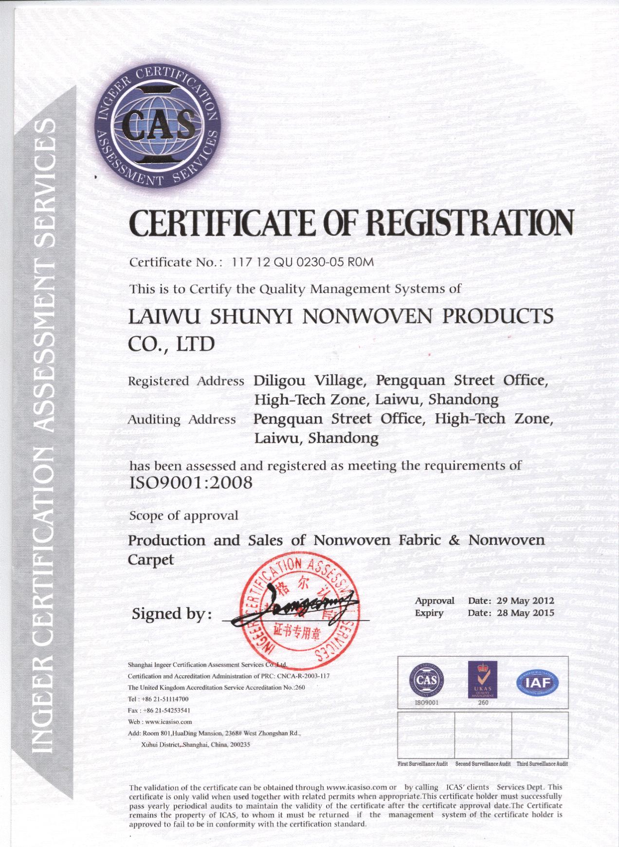 萊蕪順意無紡制品有限公司位于山東省萊蕪市高新區(qū),地處京滬高速公路東出口,40分鐘車程可達(dá)濟(jì)南遙墻國際機(jī)場、2小時可達(dá)青島港。交通運(yùn)輸便利。